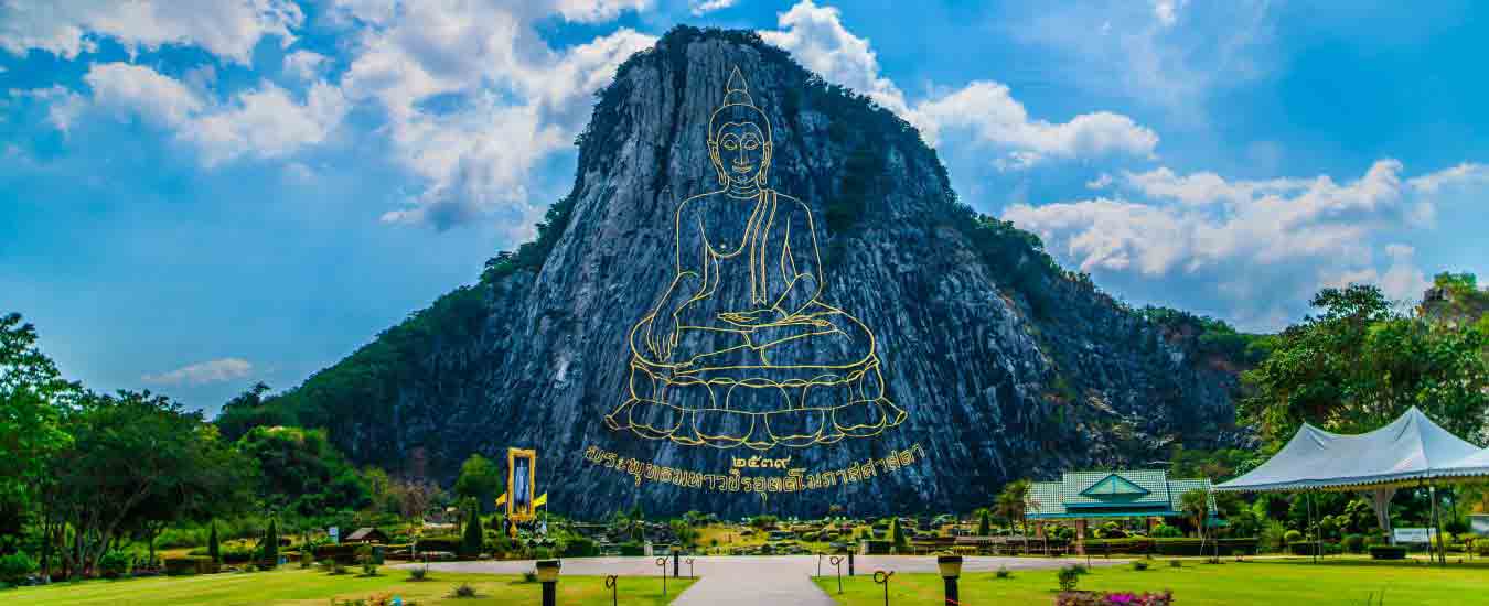 Thailand is the land of many Buddhas. Nowhere is this fact as evident as Khao Chi Chan or Buddha Mountain, which features an image of the Buddha in deep meditation, carved into the face of a cliff. At 109 x 70 metres, this Buddha will take your breath away.