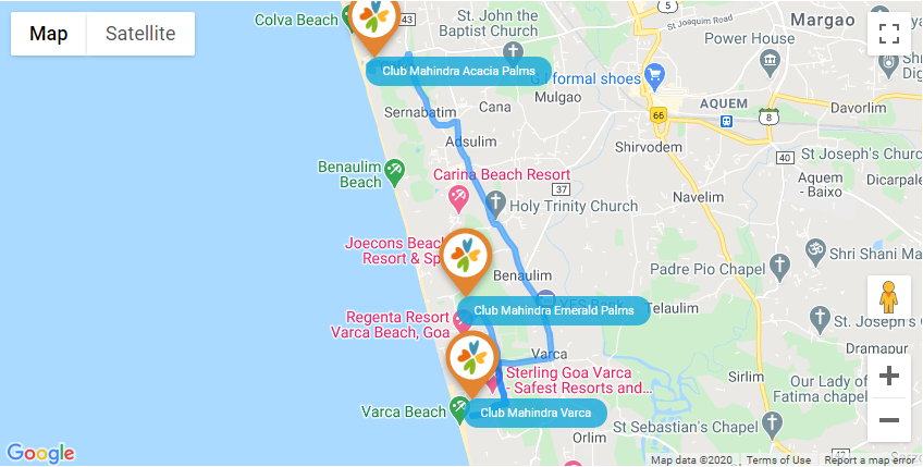 The closest resorts are Club Mahindra Varca and Club Mahindra Emerald Palms, Goa.